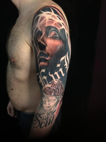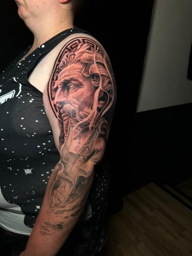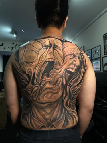 He combines technical mastery with artistic depth to create tattoos that are both striking and timeless. His passion for dark and horror themes adds a unique edge to his style, making each piece a powerful expression of artistry and atmosphere.